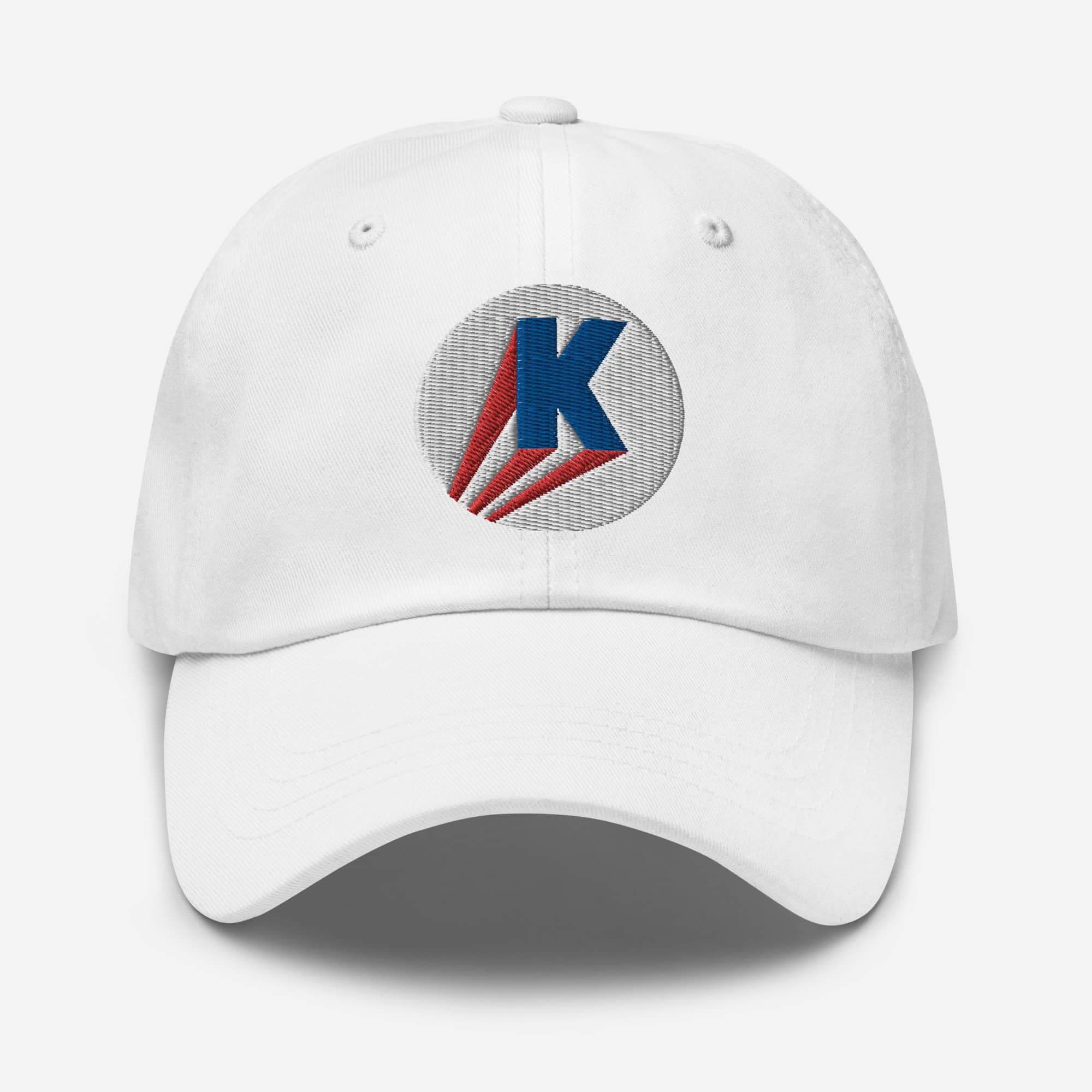 “Kamala Super K” by Gary Taxali. Taxali’s “Kamala Super K” is stitched onto this structured cap with detailed embroidery for lasting definition.