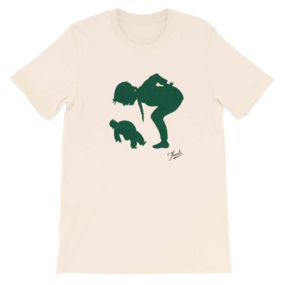 T-shirt with “Greta Stare down” Gary Taxali graphic printed on the front.